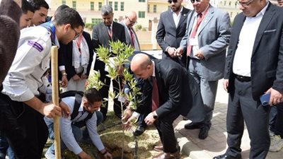 رئيس جامعة بني سويف يتفقد مشروعات طلابية ويشارك في مبادرة للتشجير داخل الحرم الجامعي