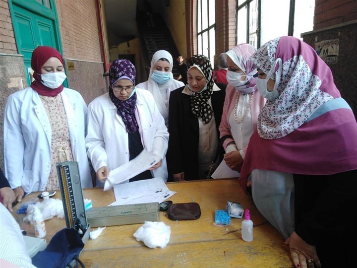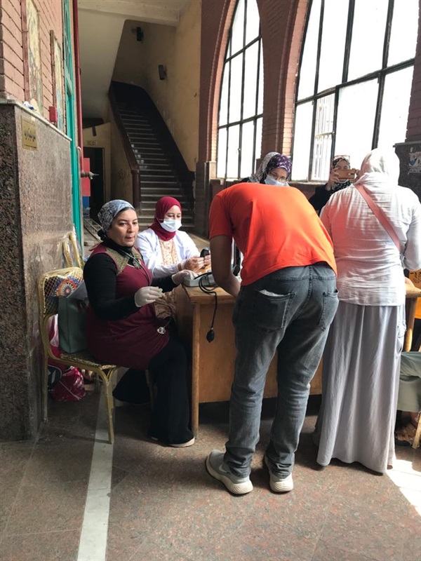 الطبية على أهالي الحي، وقياس نسبة السكر في الدم و الضغط، في إطار الحملة القومية