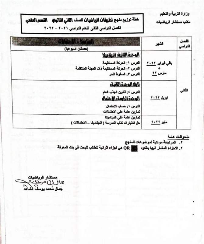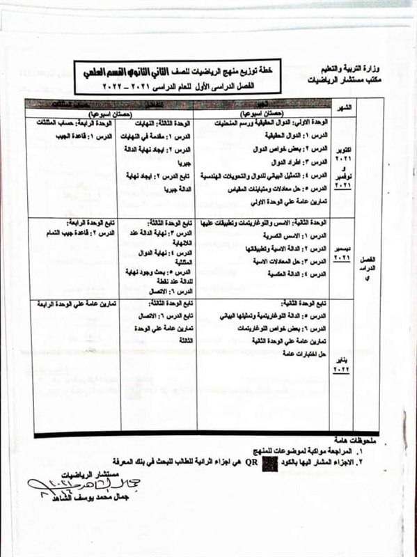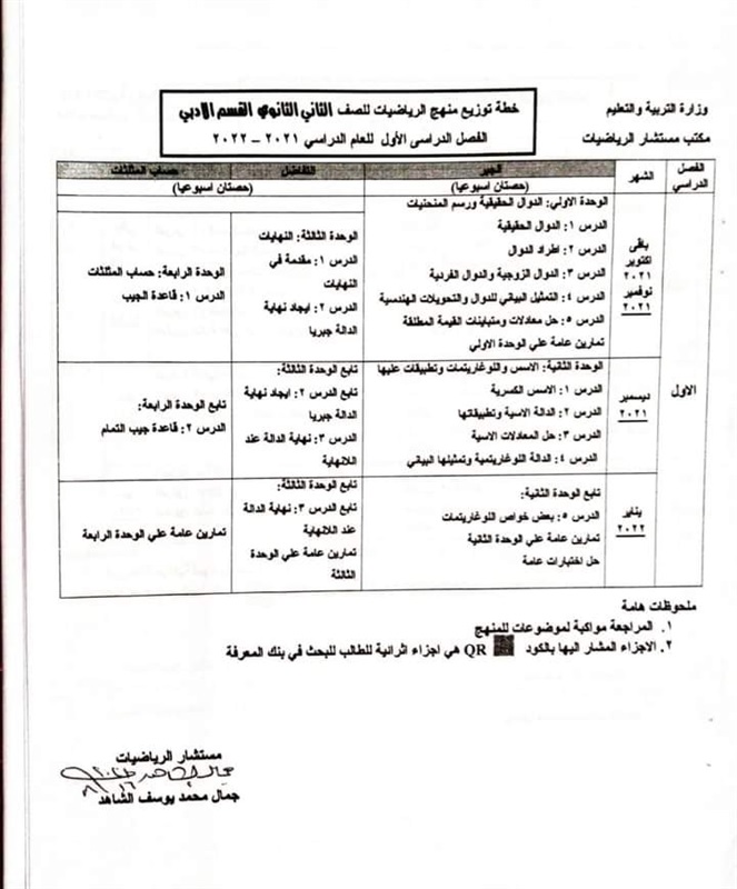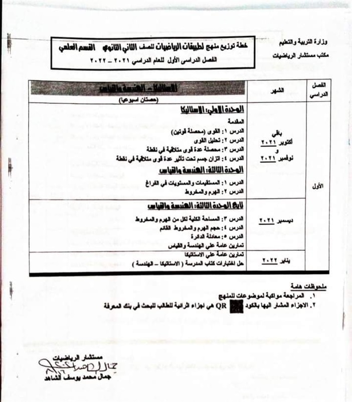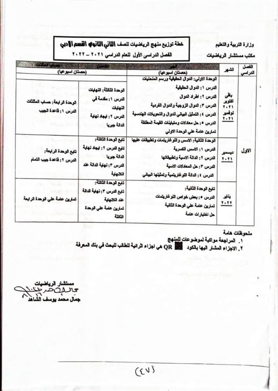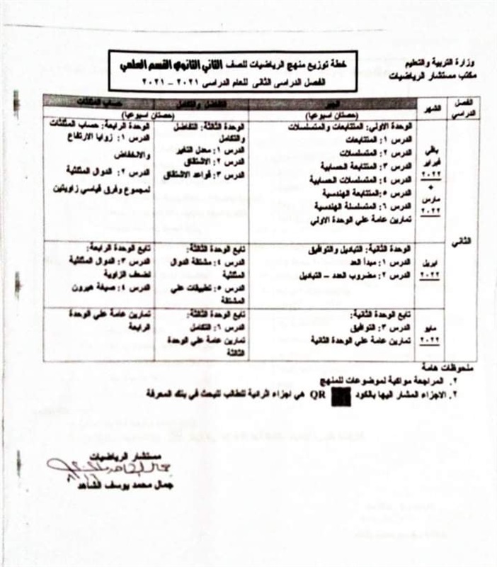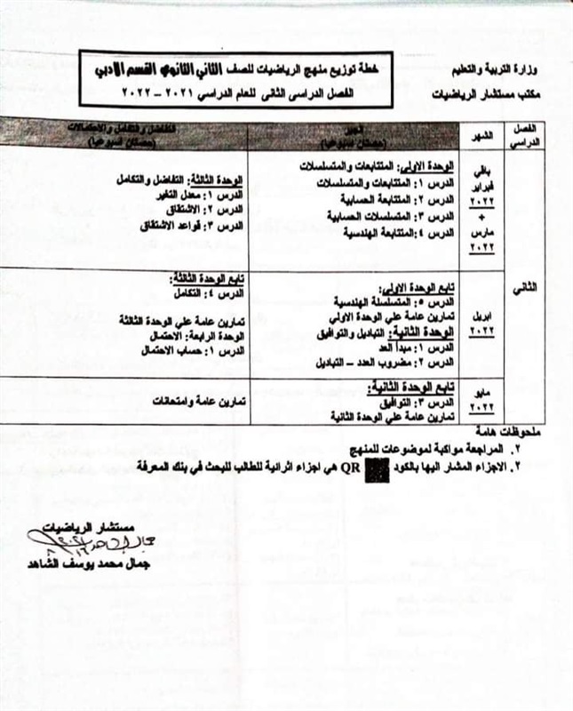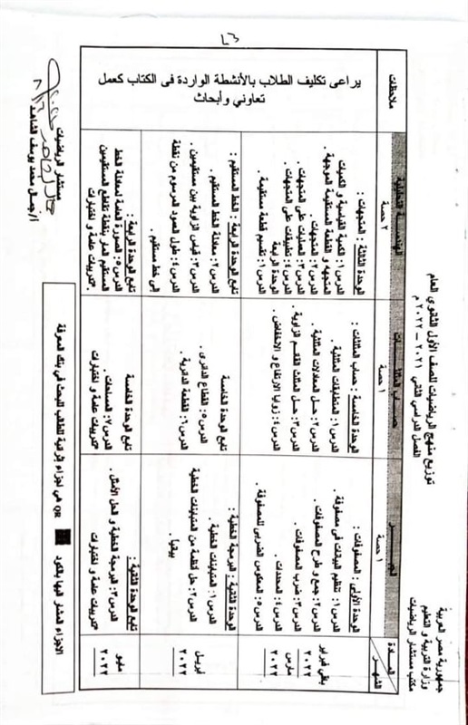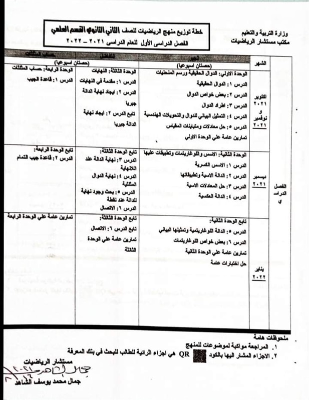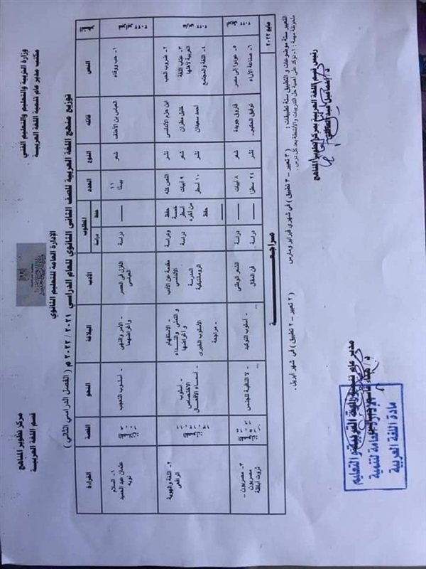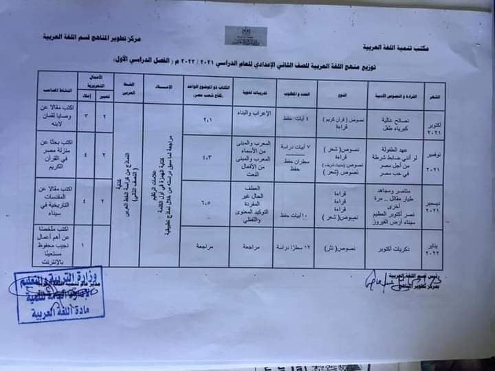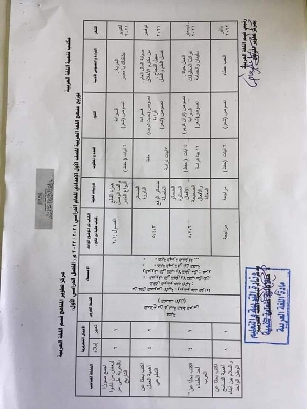 ننشر توزيع مناهج اللغة العربية والرياضيات لجميع الصفوف الدراسية