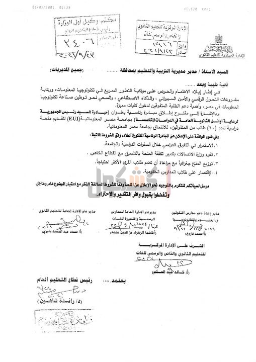 من المتفوقين والالتحاق بجامعة مصر المعلوماتية.