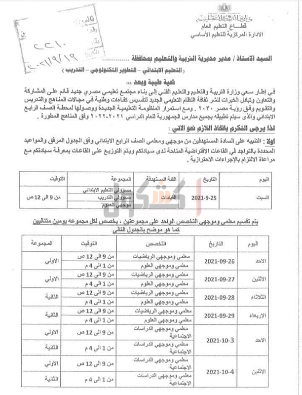 مواعيد تدريب معلمى وموجهي تعليم 2 "مستندات"