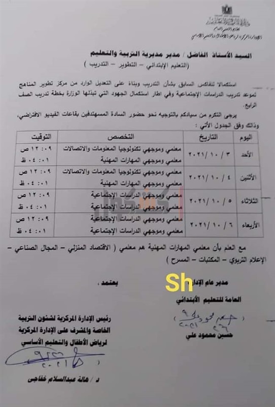 الأحد يوم 3 /10/2021 معلمي وموجهي الدراسات الاجتماعية