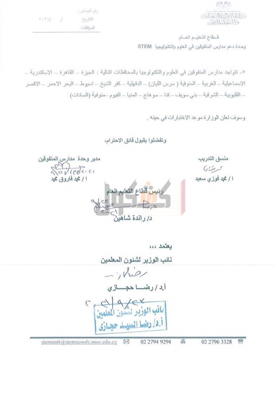 أعلنت وحدة مدارس المتفوقين التابعة لوزارة التربية والتعليم، فتح باب التقديم للمعلمين الراغبين في العمل بالمدارس بنظام المأمورية وذلك في الفترة من ٢٥ سبتمبر الي ٣٠ سبتمبر الجاري .