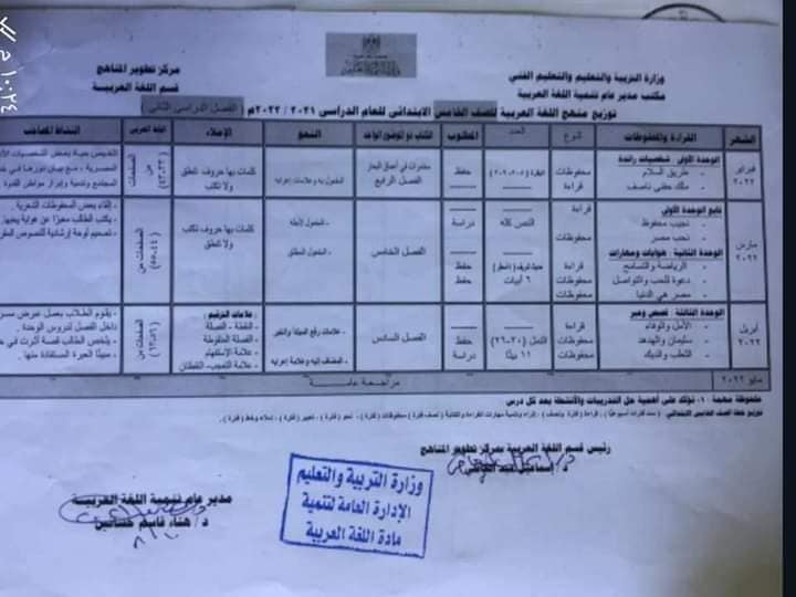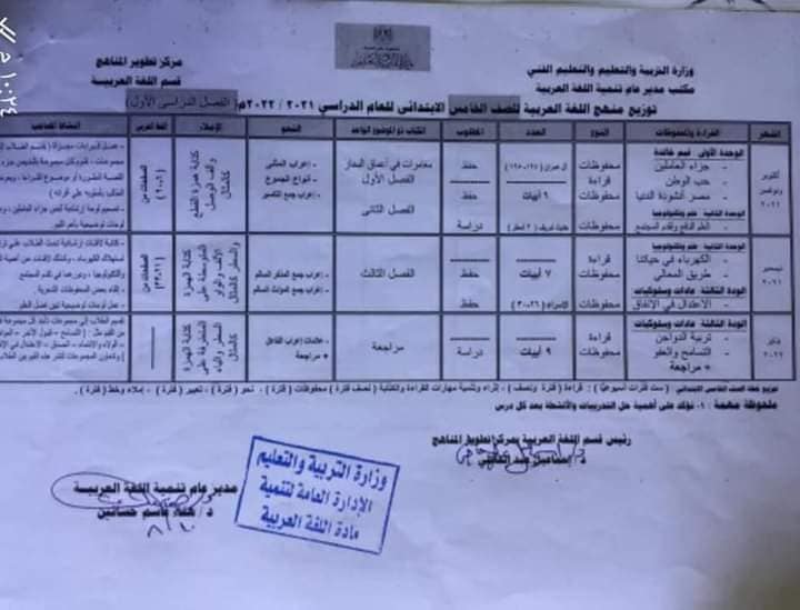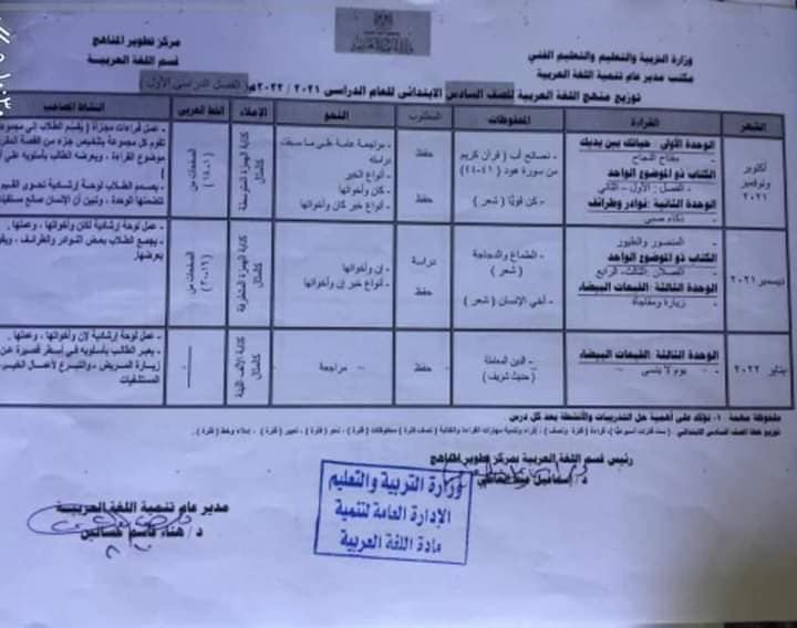 مكتب منهج اللغة العربية للعام الدراسي الجديد 2021_ 2022 الفصل الدراسي الأول