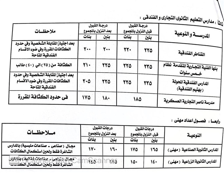 قرار بالنزول بدرجة الحد الأدنى لتنسيق القبول بالثانوى الفنى بنوعياتها (صناعي- زراعي-