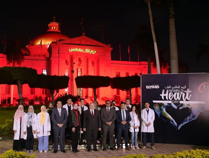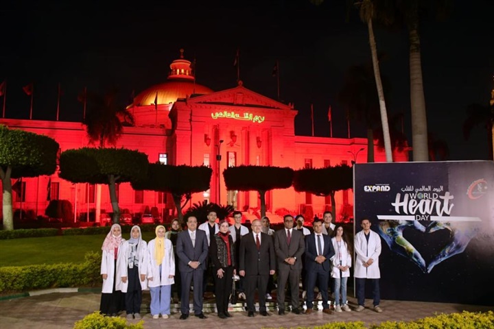 أضيئت قبة جامعة القاهرة باللون الأحمر، في إطار الاحتفال باليوم العالمي للقلب والذي تحتفل به منظمة الصحة العالمية سنويًا يوم 29 سبتمبر بهدف التوعية ضد المخاطر التي تتسبب فيها أمراض القلب وخفض معدل انتشارها حول العالم.