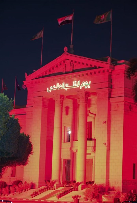 إضاءة قبة جامعة القاهرة باللون الأحمر احتفالًا باليوم العالمي للقلب