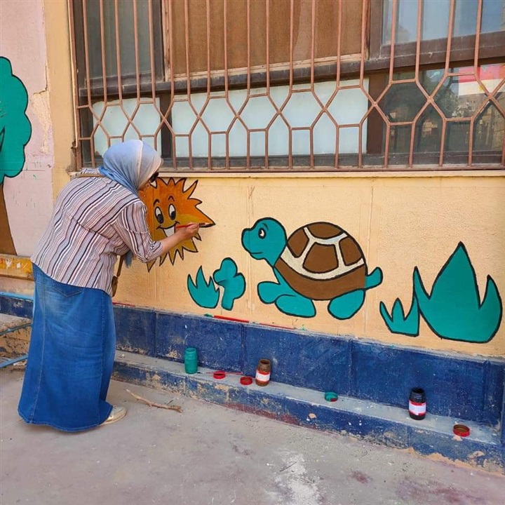 وتقليم الأشجار ورسم الفناء بمشاركة طلبة المدرسة، وتزيين قاعات رياض