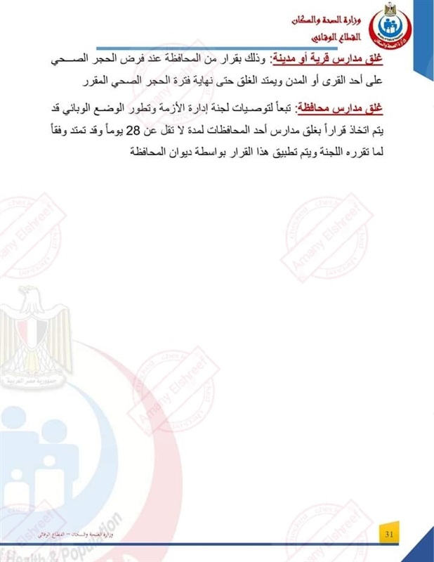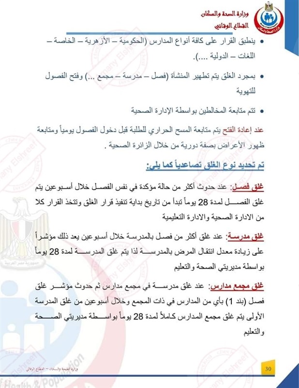 الصحة والسكان، قطاع الطب الوقائى، يتعين على كافة المديريات والإدارات التعليمية والمدارس