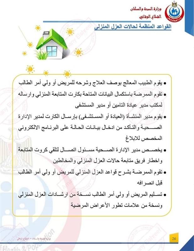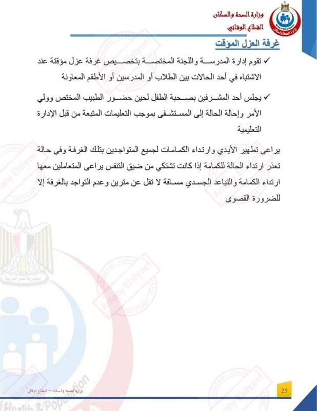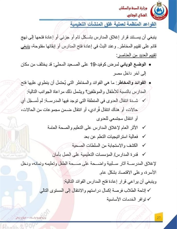 للعام الدراسي الجديد 2021/ 2022 والتي أقرتها وزارة الصحة والسكان، قطاع الطب الوقائي،