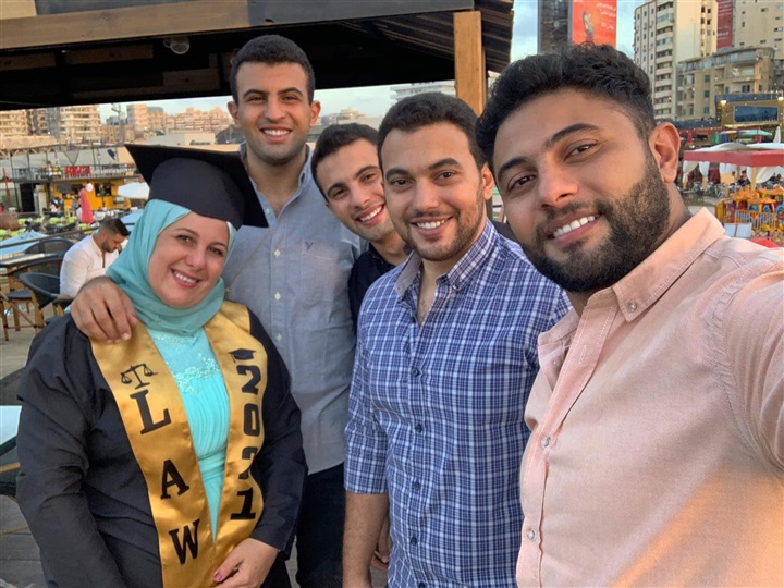 احتفل ٤ أبناء بتخرج والدتهم من كلية الحقوق جامعة الإسكندرية الدفعة رقم ٨٠، وذلك بعد عدم استكمال دراستها بسبب الزواج.