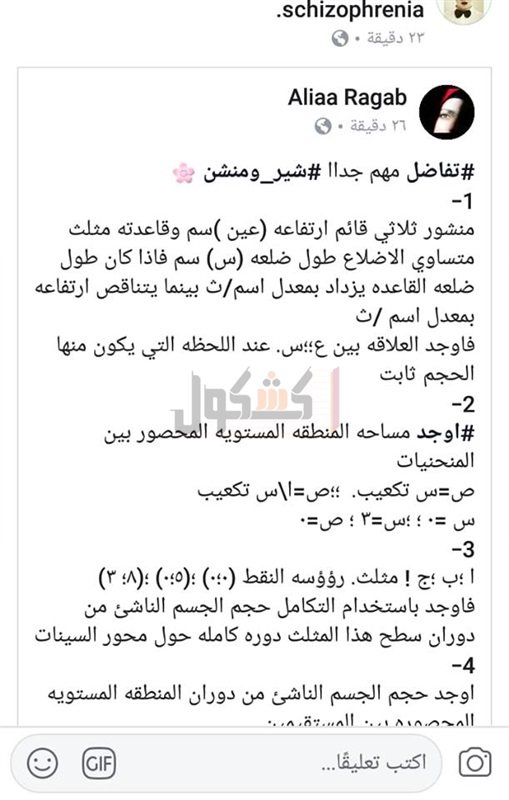بعد بدء اللجان بدقائق.. "شيزوفيرنيا" تنشر أسئلة امتحان التفاضل