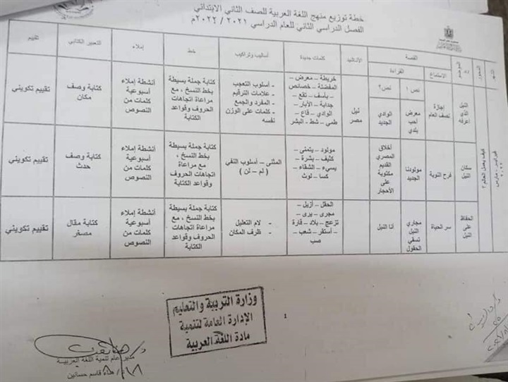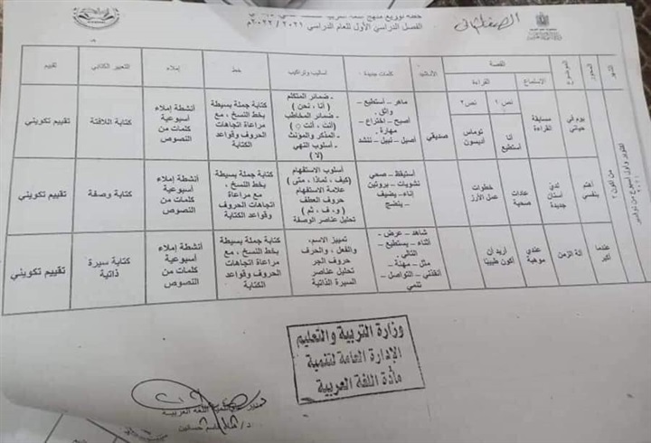 أعلنت وزارة التربية والتعليم والتعليم الفني، خطة توزيع منهج مادة اللغة العربية لصفوف الأولي بالمرحلة الأبتدائية والتي تعد ضمن منظومة التعليم الجديدة.