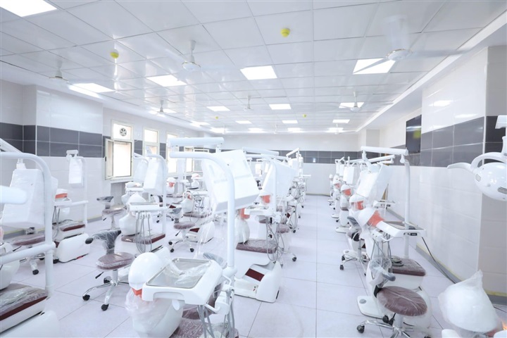 وتفقد وزير التعليم العالي، مبنى كلية طب الأسنان الذي يقع داخل المجمع الطبي للجامعة، وبلغت تكلفته نحو 70 مليون جنيه، ويضم مبنى الكلية العديد من المدرجات سعة 250 طالب و100 طالب، وفصول دراسية ومعامل ومكتبة ووحدات مُحاكاة "Simulator" وعيادات خاصة مزودة بأحدث الوسائل التكنولوجية، فضلًا عن عيادات استقبال الأسنان التي تحتوي على 28 وحدة أسنان كاملة، وغرفة أشعة، بالإضافة إلى العيادات التعليمية (عيادات الأسنان) وتحتوي على وحدات الأسنان لتدريب الطلاب بشكل يؤهلهم للعمل في سوق العمل وتقديم إضافة قوية للمنظومة الصحية في مصر.