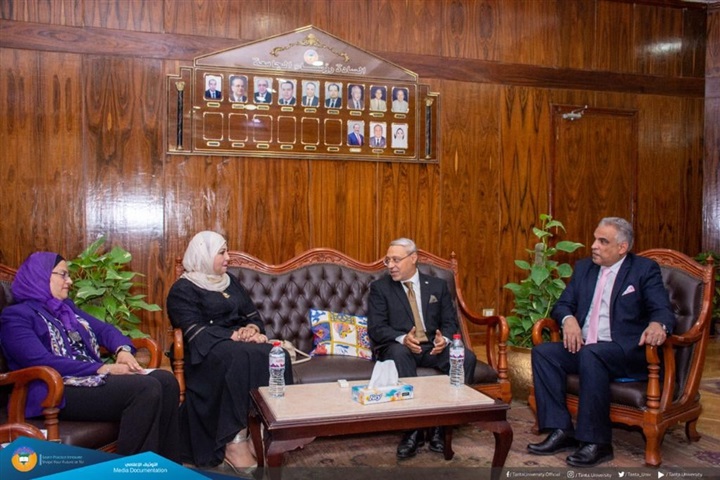استقبل الدكتور محمود ذكي رئيس جامعة طنطا، اليوم، الدكتورة رشا كمال مدير الادارة المركزية لشئون الوافدين، والدكتورة هالة مقلد مستشار الدعم الفني بوزارة التعليم العالي، وذلك على هامش عقد منتدى وورشة عمل تعريفية بالمبادرة الرئاسية "ادرس في مصر" بالجامعة في حضور الدكتور محمود شكل مدير المركز الرئيسي للعلاقات الدولية ورعاية الطلاب الوافدين.