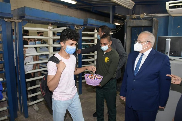 كما أجرى الخشت، حوارًا مع الطلاب، حذرهم خلاله من تجاهل التعليمات والتدابير