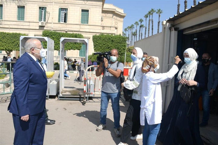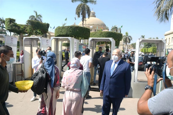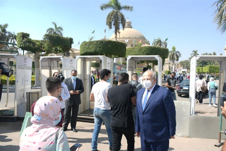 الجامعة بالإجراءات الاحترازية وارتداء الكمامات الطبية، ومرور الطلاب ومن بوابات التعقيم