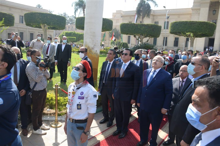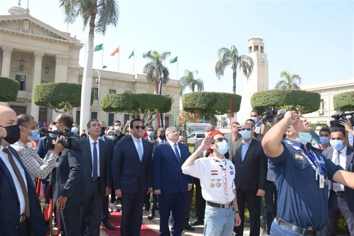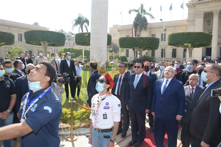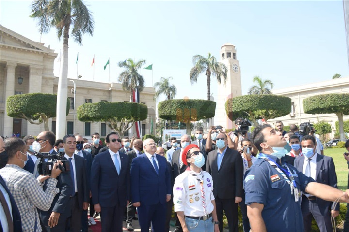 "عبدالغفار والخشت" يشهدان تحية العلم وعزف النشيد الوطني أمام قبة حرم جامعة القاهرة