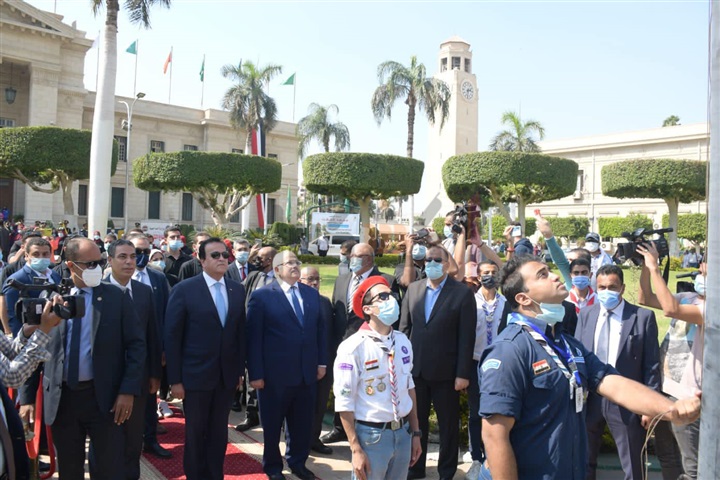 تحية العلم الوطني أمام قبة جامعة القاهرة، مع انطلاقة اليوم الأول للعام الدراسي الجديد