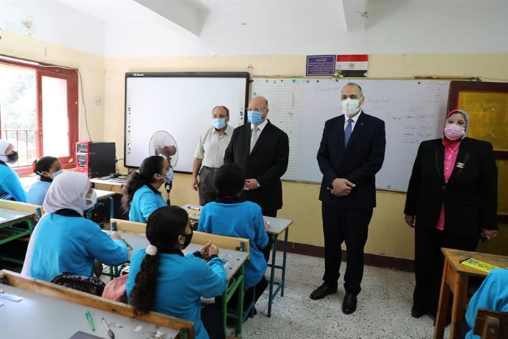 وأكد أنه تم اتخاذ الإجراءات اللازمة لتخفيف الكثافات داخل الفصول وتوافر تهوية جيدة بها وتعيين مشرف لتنظيم نزول وصعود الطلاب الفصول لتجنب التزاحم ، مشددا على ضرورة متابعة النظاقة بالمدارس بالفصول ودورات المياه والمعامل مع التأكد من توافر بوابات التعقيم للحد من انتشار الفيروس .
