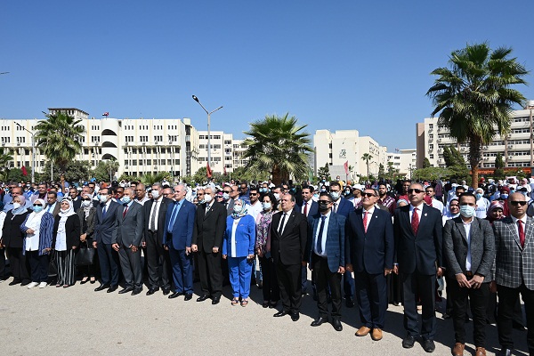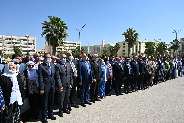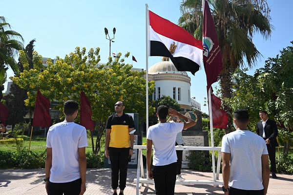 جامعة الفيوم تبدأ العام الجامعي الجديد بتحية العلم وعزف النشيد الوطني.. صور