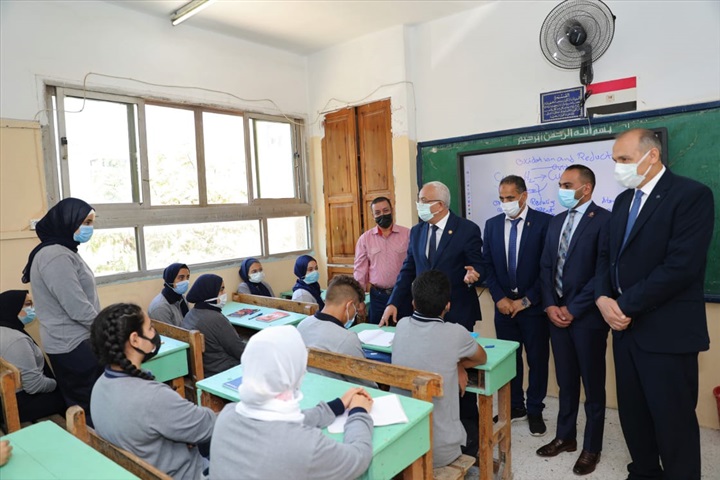 كما تفقد فصول المدرسة والحجرات الدراسية، وتأكد من تأثيث الفصول بالأثاث المدرسي المناسب، ونظافة دورات المياه، وتابع قوائم الفصول وجاهزية السبورات والمعامل، ثم توجه لمدرسة الشيماء الثانوية بنات، وخلال تفقده الفصول المدرسية، ناقش الطالبات في المادة الدراسية وانطباعهم عن عودتهم للمدرسة، حيث أعربت الطالبات عن سعادتهن وحماسهن لعودة الدراسة، وأشاد بنظافة المدرسة والالتزام بالإجراءات الاحترازية لمواجهة فيروس كورونا.