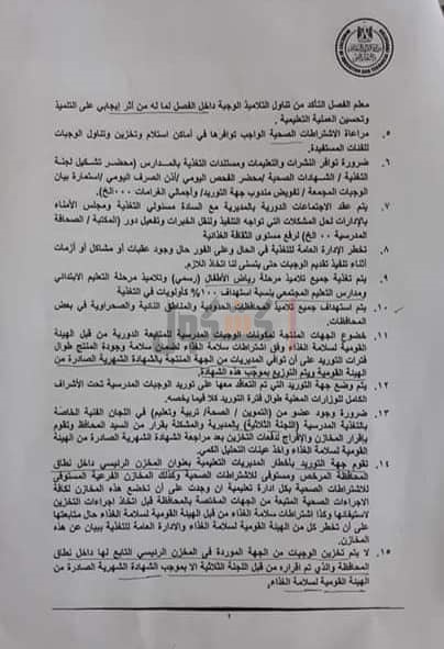 _ لجان التغذية بالمدارس تقوم باتخاذ كافة الاجراءات