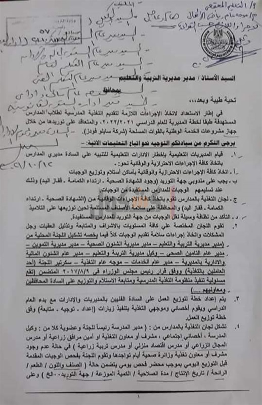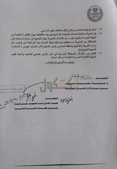 تقوم جهة التوريد بإخطار المديريات التعليمية بعنوان