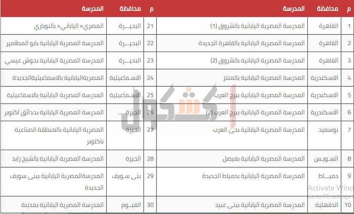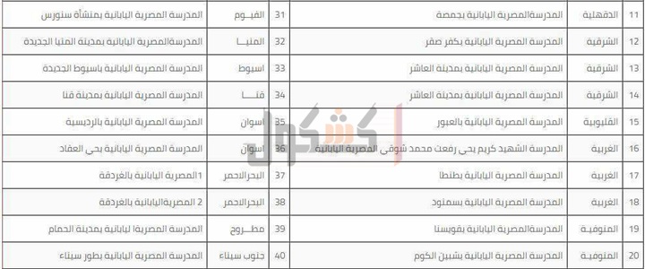 ننشر أماكن المدارس اليابانية علي مستوي الجمهورية