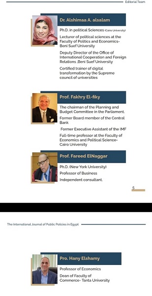 الدكتورة الشيماء عبدالسلام المدرس بكلية السياسية والاقتصاد عضواً بهيئة تحرير المجلة الدولية للسياسات العامة