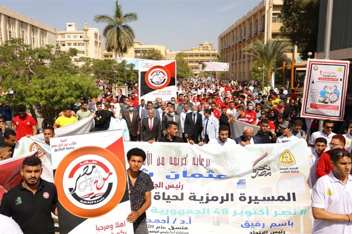 ونواب رئيس الجامعة، والدكتور أحمد عناني وعمداء ووكلاء الكليات بمسيرة رمزية لحياة