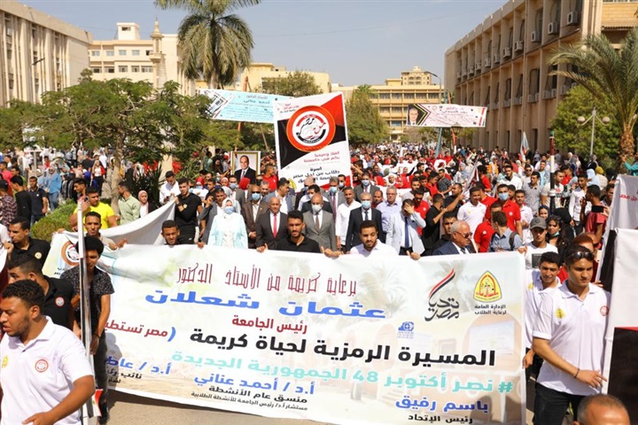 كريمة بعنوان "مصر تستطيع بشبابها" انطلقت من أمام مبنى رئاسة الجامعة مرورًا