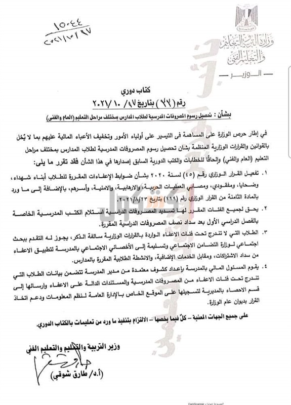 الوزارية بشأن تحصيل رسوم المصروفات المدرسية لطلاب المدارس بمختلف المراحل