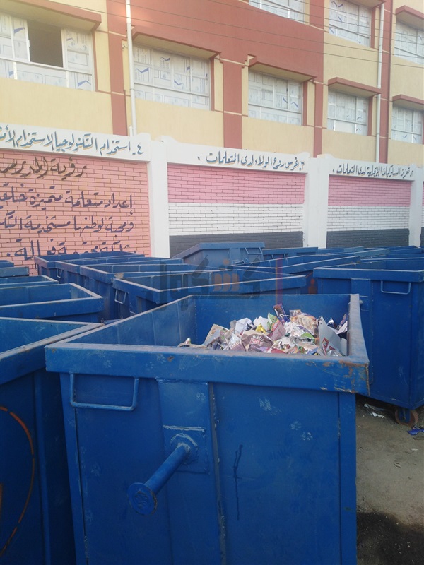 صناديق القمامة وسيارات النظافة تمنع طالبات مدرسة بالبحيرة من الدخول "صور"