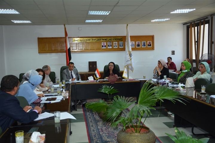 مها كامل غانم نائب رئيس الجامعة لشئون خدمة المجتمع وتنمية، عن ترأسها لاجتماع موسع