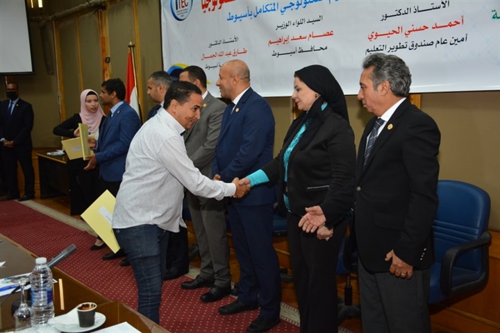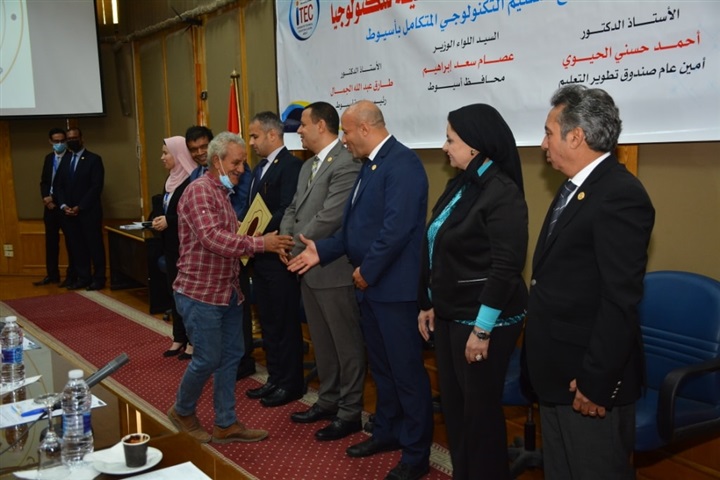 كما شهدت الجلسة تكريم أوائل الخريجين بمجمع التعليم التكنولوجى المتكامل فتم تكريم اوائل طلاب الدفعة الأولى تخصص كهرباء وهم: محمود حسانين محمد، سمعان بدر عطيه، حمدي أحمد عمر، وأوائل الدفعة الثانية كهباء وهم الطلاب حسن محمود عطيه، مصطفى صلاح عبدالله، كريم أيمن أنور، وكذلك أوائل الدفعة الأولى ميكانيكا وهم الطلاب حسن عصام حسن، حسام جابر، خالد ممدوح أحمد، وأوائل الدفعة الثانية ميكانيكا وهو الطلاب يوسف نصور، يوسف شعبان، مصطفى حمادة، كما تم تكريم الجهات الصناعية المشاركة في التدريب بالمجمع وهم معهد تكنولوجيا المعلومات بأسيوط، مهندسي وفنيين شركة المقاولون العرب، ومهندسي وفنيين العاملين بورش الري.