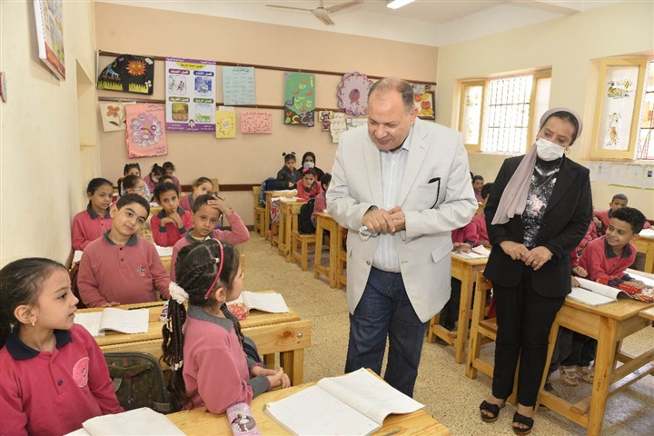 وخلال تفقده أحد فصول الصف الأول الابتدائى