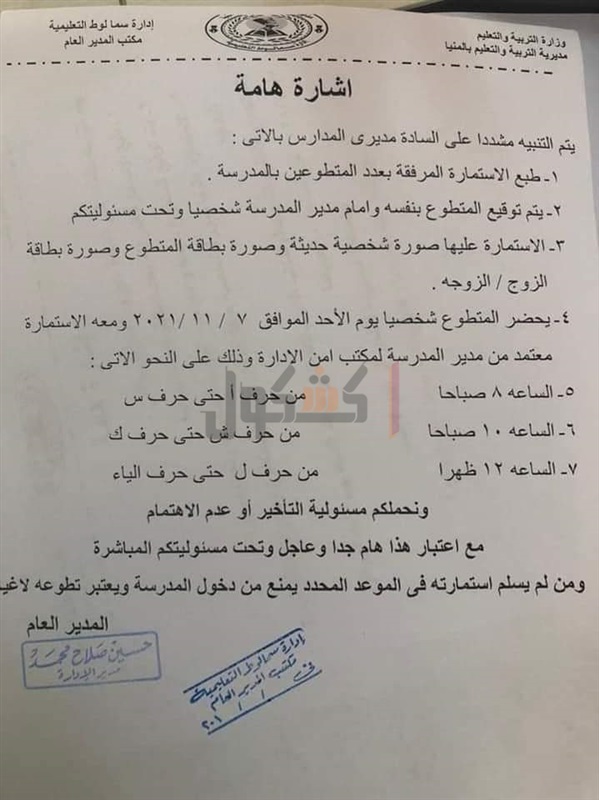 إشارة عاجلة لمديري المدارس بشأن التطوع بالتدريس