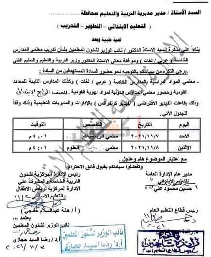 جاء ذلك بناءًا على مذكرة تم رفعها للدكتور رضا حجازي نائب وزير التربية والتعليم لشئون المعلمين، بشأن تدريب معلمي المدارس الخاصة عربي ولغات للعام الدراسي 2021_ 2022.