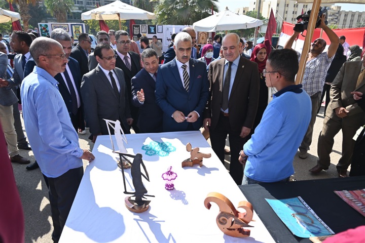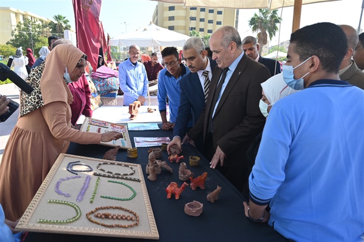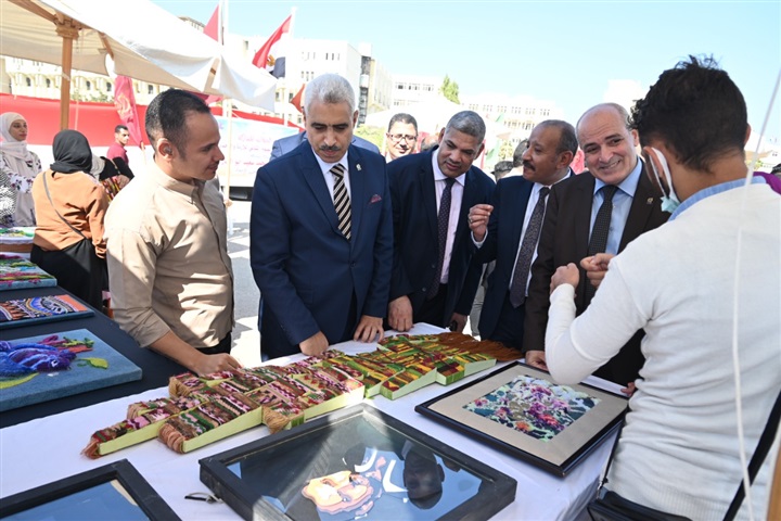جامعة الفيوم تفتتح معرض المشغولات اليدوية بالمهرجان الثاني للإرادة والتحدي