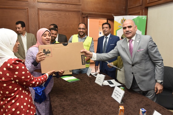 لتوفير الدعم المستحق للطلاب من أبناء الجامعة، وتسلم الطلاب أجهزة لاب توب مزودة بأحدث