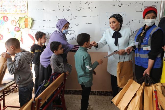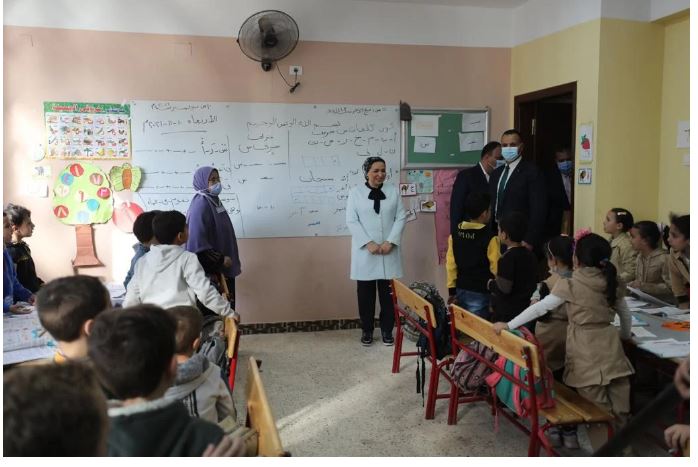 انتصار السيسي توزع هدايا على تلاميذ مدرسة شما بالمنوفية