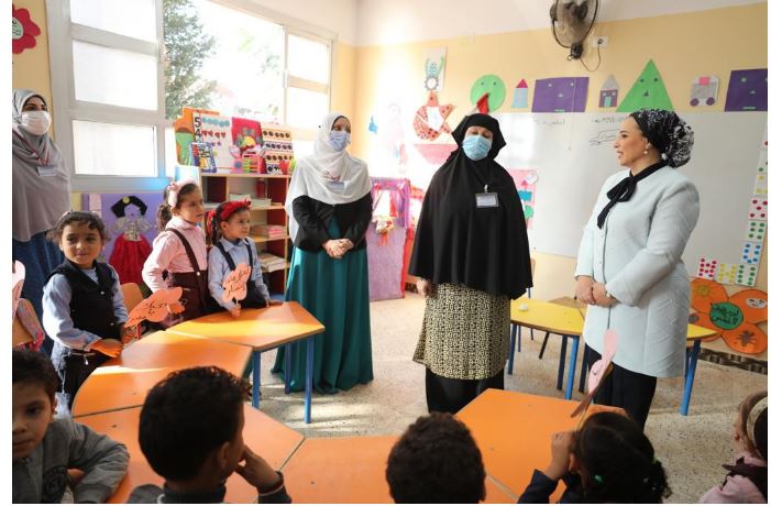 واستمعت انتصار السيسي إلى شرح عن تطورات تنفيذ مشروعات حياة كريمة بالقرية، ثم تفقدت المكتبة اللي تم تنفيذها بمركز شباب القرية الذي تم تجديده ضمن مشروعات المبادرة.