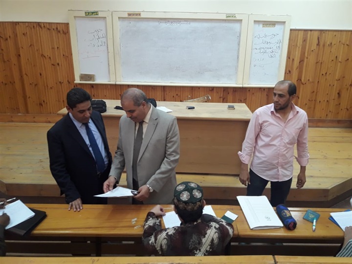 واستقبل المحرصاوي وسلمان لدى وصولهما، الدكتور عبد الله سرحان عميد كلية الدراسات العليا والدكتور محمد سلامة وكيل الكلية، و تم الاطمئنان على انتظام اللجان وفتحها في مواعيدها والتزام الأسئلة بالمقررات الدراسية.
