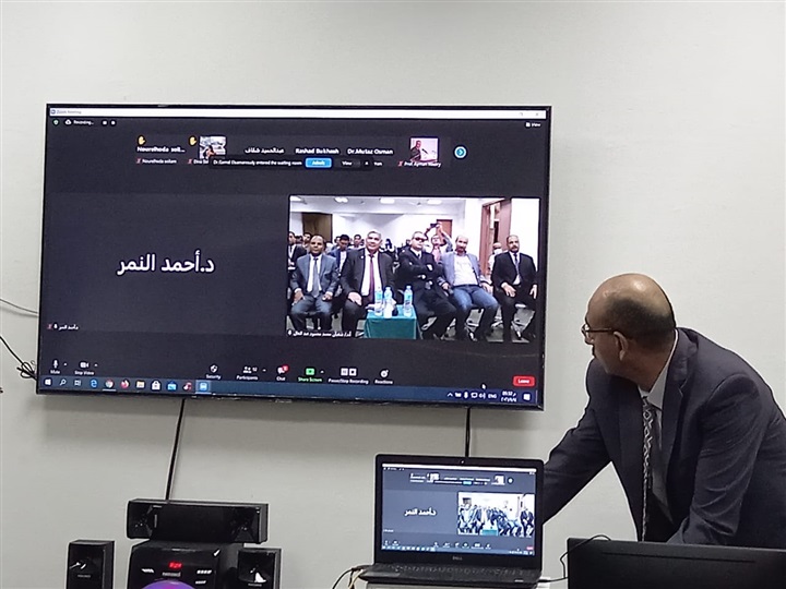 الكريم بالكلية وعبر تطبيق زووم، كما أعرب الدكتور عصام فرج النجدي عن بالغ سعادته