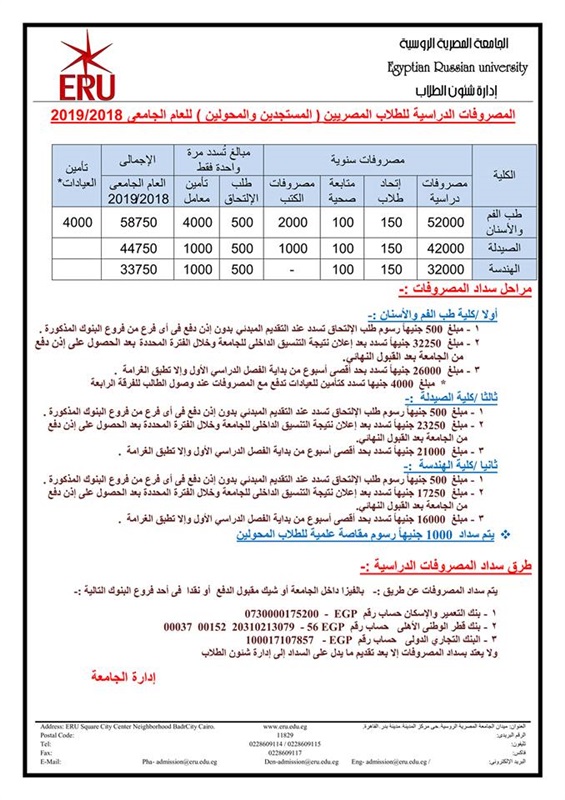 ننشر المصروفات الدراسية للجامعة المصرية الروسية