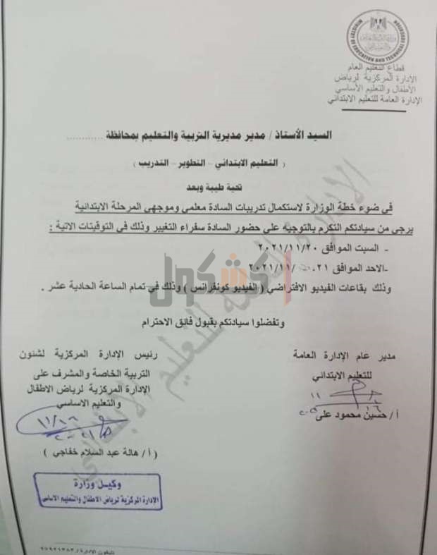 خاطبت وزارة التربية والتعليم والتعليم الفني، وحدات التعليم الابتدائي والتطوير والتدريب في المديريات التعليمية، بأنه في ضوء خطتها لاستكمال تدريبات معلمي وموجهي المرحلة الابتدائية، سيجري استئناف التدريبات اعتبارا من يوم السبت المقبل الموافق 20 نوفمبر الجاري، ويوم الأحد الموافق 21 من الشهر نفسه.