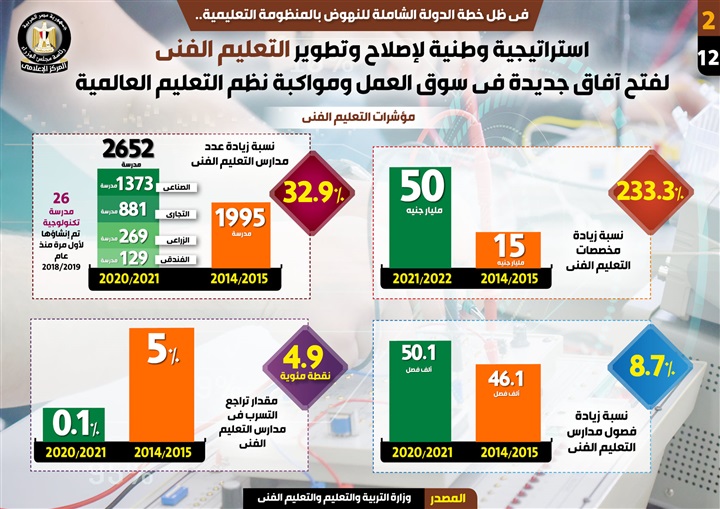 مؤشرات التعليم الفني، حيث زادت مخصصاته بنسبة 233,3% لتصل لـ 50 مليار جنيه عام