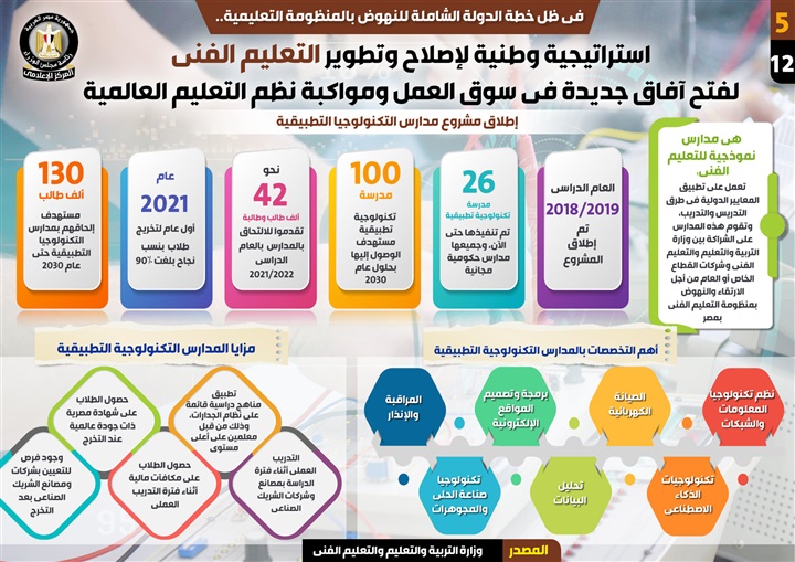 الحديث عن توجه الدولة نحو إطلاق مشروع مدارس التكنولوجيا التطبيقية، والتي تعد مدارس