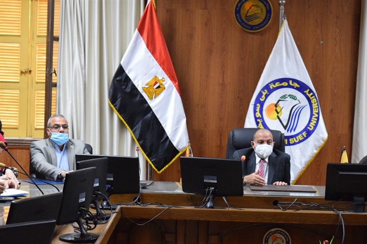جامعة بني سويف، خلال الاجتماع بإعادة الهيكلة لتحقيق أقصى استفادة للجامعة في إطار